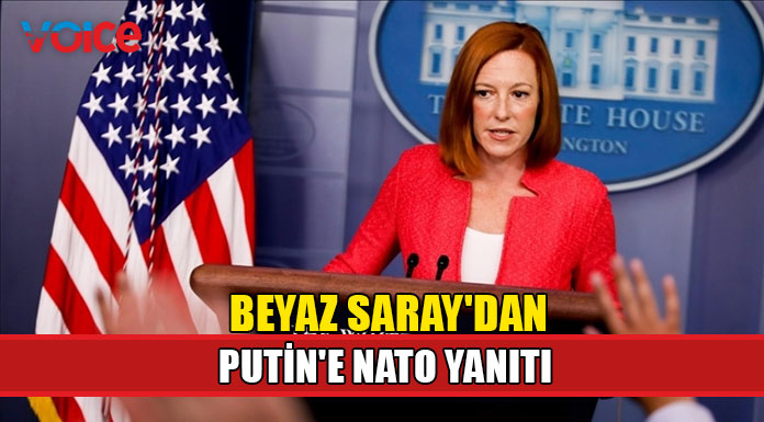 Beyaz Saray Sözcüsü Jen Psaki, NATO’nun “savunmacı”, Rusya’nın ise “saldırgan” olduğu yönündeki değerlendirmelerin kabul edilemeyeceğini söyleyen Rusya Devlet Başkanı Vladimir Putin’e “NATO her zaman bir savunma örgütü olmuştur, sınıra 10 binlerce askeri yığan NATO değil Rusya’dır.” sözleriyle yanıt verdi.