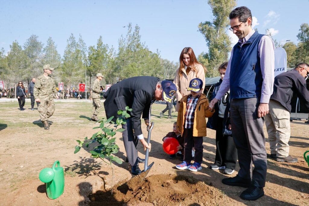Cumhurbaşkanı Ersin Tatar’ın yanı sıra, TC Lefkoşa Büyükelçisi Yesin Ekrem Serim ve ailesinin katıldığı bugünkü ağaçlandırma bayramı çerçevesinde servi, kızılçam, parkinsonya, portakal, limon ve mandalina fidanlarından oluşan toplam 3 bin ağaç dikildi. KTKA alanı içerisindeki toplam ağaç sayısı 8 bine yükseltildi.
