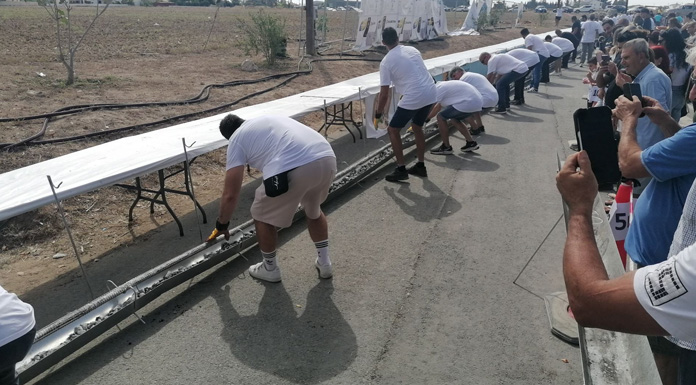 Güney Kıbrıs’ta dün, 75 metre uzunluğunda şeftali kebabı yapılarak Guiness Rekorlar Kitabı’na girildiği bildirildi.