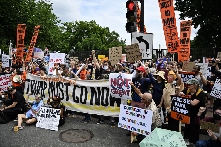 Öte yandan, ülke genelindeki “Krallara hayır” eylemlerinden ayrı olarak Beyaz Saray önünde toplanan bir grup gösterici, “Trump hemen şimdi gitmek zorunda” şeklinde sloganlar atarak protesto gösterisi yaptı.
