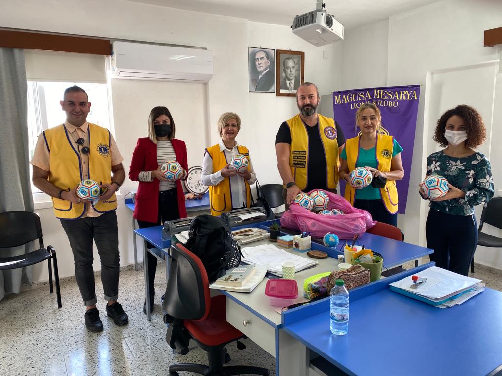 Mağusa Mesarya Lion’larının ziyaret ettiği Görmezler Derneği bünyesindeki okula akıllı toplar teslim edildi.