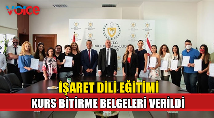 Milli Eğitim ve Kültür Bakanlığı Eğitim Ortak Hizmetler Dairesi ile Kıbrıs İşitme Konuşma Engelliler Vakfı (KİKEV) arasında imzalanan protokol kapsamında, uzman eğitmenler tarafından modüler olarak verilen işaret dili eğitimleri sonucunda, modül-2 eğitimlerini tamamlayarak yapılan değerlendirmelerde başarılı olan 17 katılımcıya, kurs bitirme belgeleri verildi. Belgeleri, Milli Eğitim ve Kültür Bakanı Olgun Amcaoğlu verdi.
