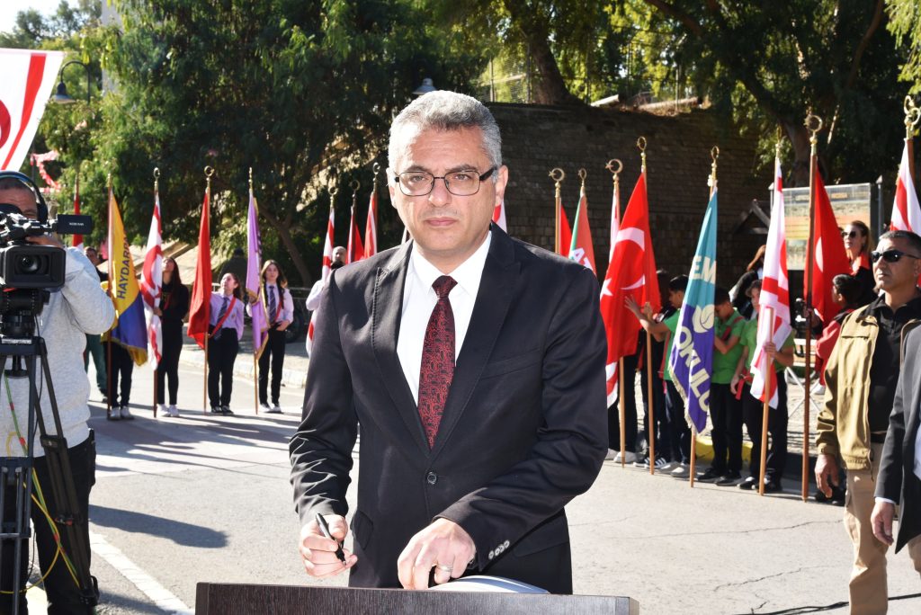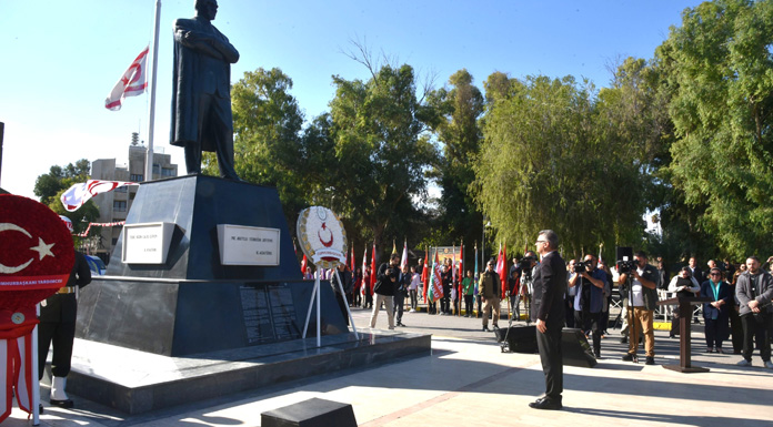 “Ömrünü, varlığından güç aldığı Aziz Türk Milletine adayan, Cumhuriyetimizin Kurucusu, Ebedi Başkomutanımız Gazi Mustafa Kemal Atatürk; büyük bir coşku ve gururla kutladığımız Kuzey Kıbrıs Türk Cumhuriyeti’nin kuruluşunun 42’nci yıl dönümünde huzurunuzdayız.