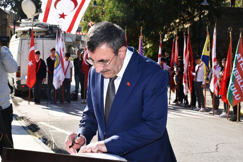 Törende, Cumhurbaşkanı Tufan Erhürman, T.C. Cumhurbaşkanı Yardımcısı Cevdet Yılmaz ve Türkiye Milli Savunma Bakanlığı temsilcisi Muharip Hava Kuvveti Komutanı Hava Orgeneral Rafet Dalkıran Anıt Özel Defteri’ni imzaladı.