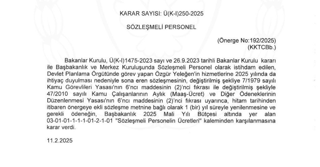 CTP Milletvekili Devrim Barçın, sözleşmesi bitmesine karşın 5 aydır işe gitmeden kamudan maaş alan şahsın an itibariyle sözleşmesinin uzatıldığını açıkladı.