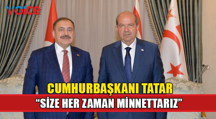 Cumhurbaşkanlığından yapılan açıklamaya göre Cumhurbaşkanı Ersin Tatar kabul sırasında yaptığı konuşmada, Veysel Eroğlu’nun Su Temin Projesi’nde büyük emeği olduğunu belirterek, “Bu bağlamda size her zaman minnettarız” dedi.