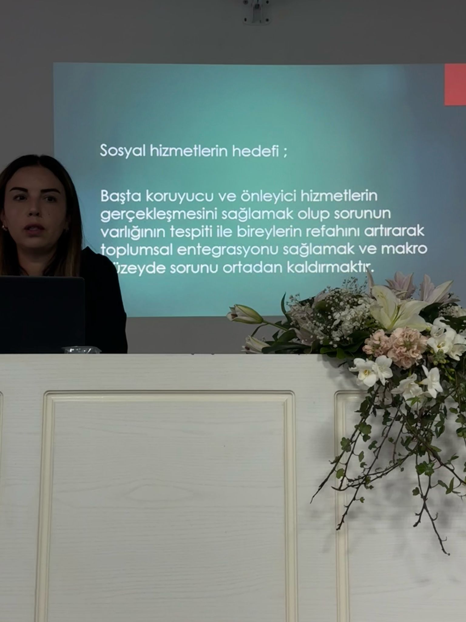 Sosyal hizmetler dairesinin görevinin ve çalışma yönteminin başta koruyucu ve önleyici hizmetlerin gerçekleşmesini sağlamak olup sorunun varlığının tespiti ile bireylerin refahını artırarak toplumsal entegrasyonu sağlamak ve makro düzeyde sorunu ortadan kaldırmak olduğunu vurguladı.