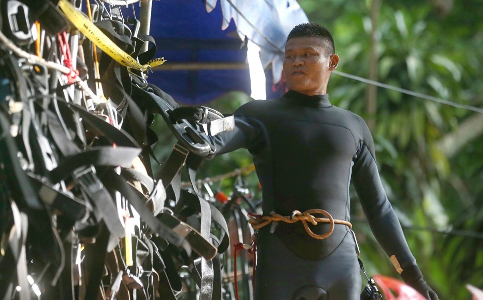Drenaj çalışmalarını yürüten itfaiye yetkilisi, mahsur kalan grubun bulunduğu nokta ile mağara girişi arasındaki geçit ve galerilerin tavana kadar sel sularıyla kaplı olduğunu, dolayısıyla çocukların dalarak çıkarılmasının tek seçenek olarak görüldüğünü söyledi.