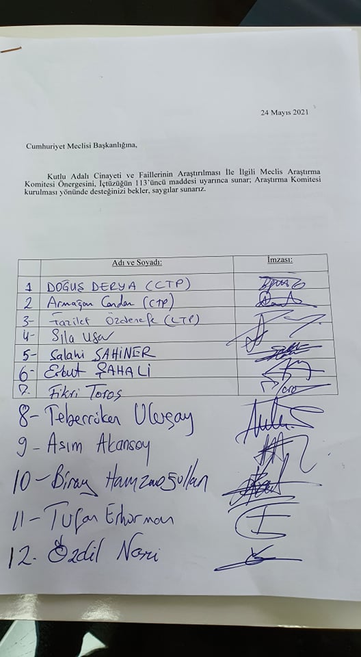 Cumhuriyetçi Türk Partisi’nin (CTP) Meclis’te yer alan 12 milletvekili, Kutlu Adalı cinayetiyle ilgili ortaya atılan yeni iddiaların araştırılması için Meclis Araştırma Komitesi kurulması adına önerge verdi.
