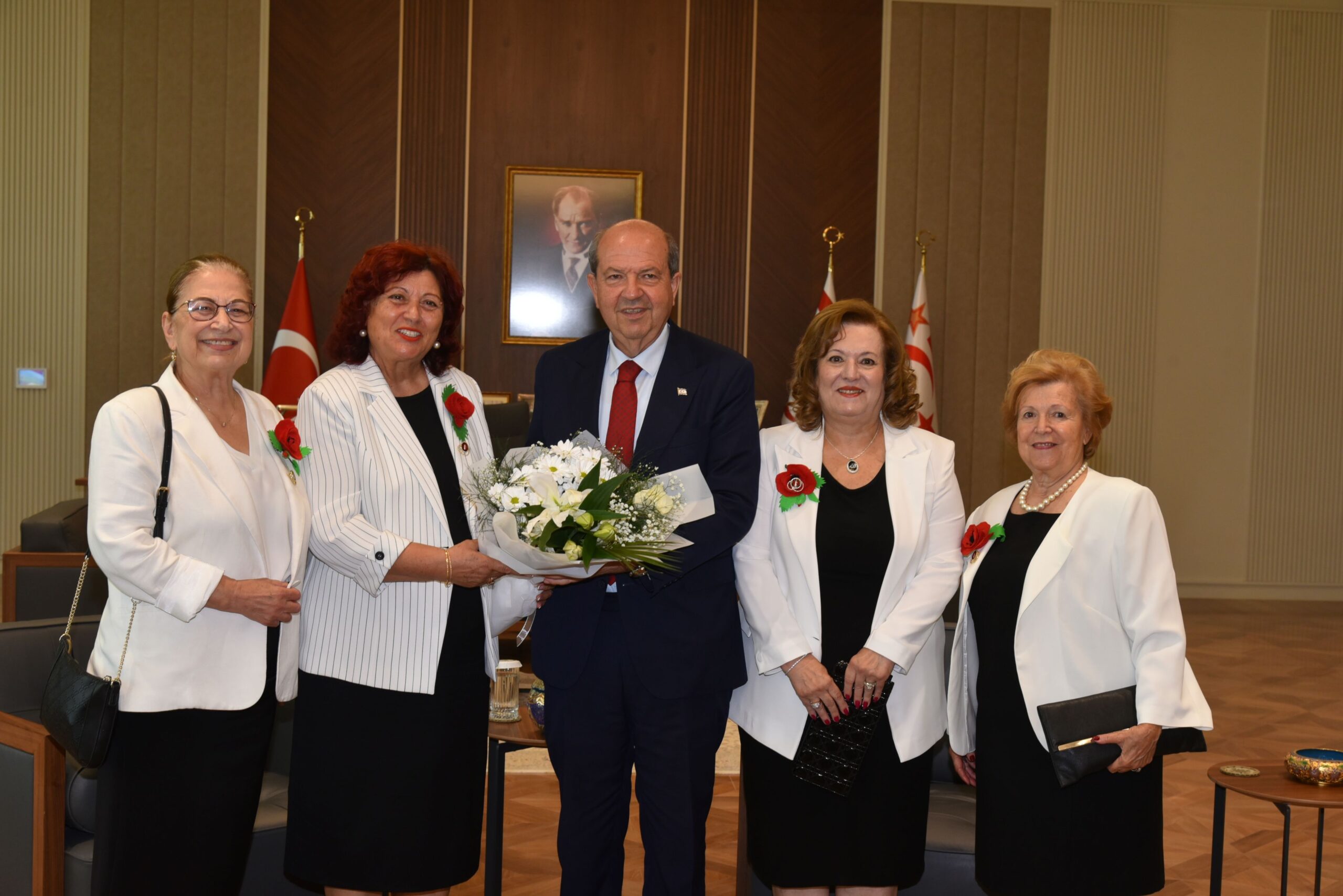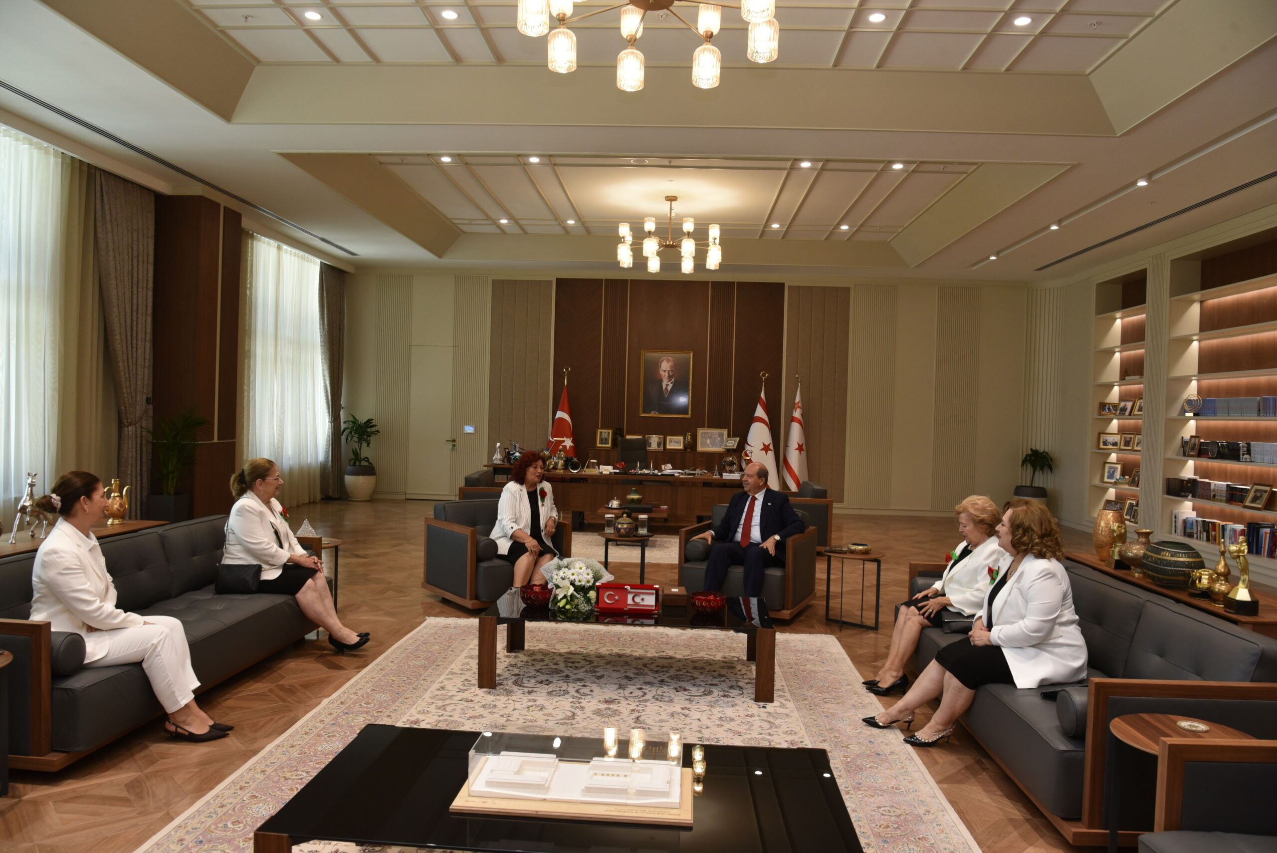 Cumhurbaşkanı Tatar, Kıbrıs Türk Kadınlar Birliği Başkanı Halide Tunceri, Kıbrıs Türk Kadınlar Birliği Lefkoşa Başkanı Tomris Mahirel ve birliğin yönetim kurulu üyelerini kabul etti.