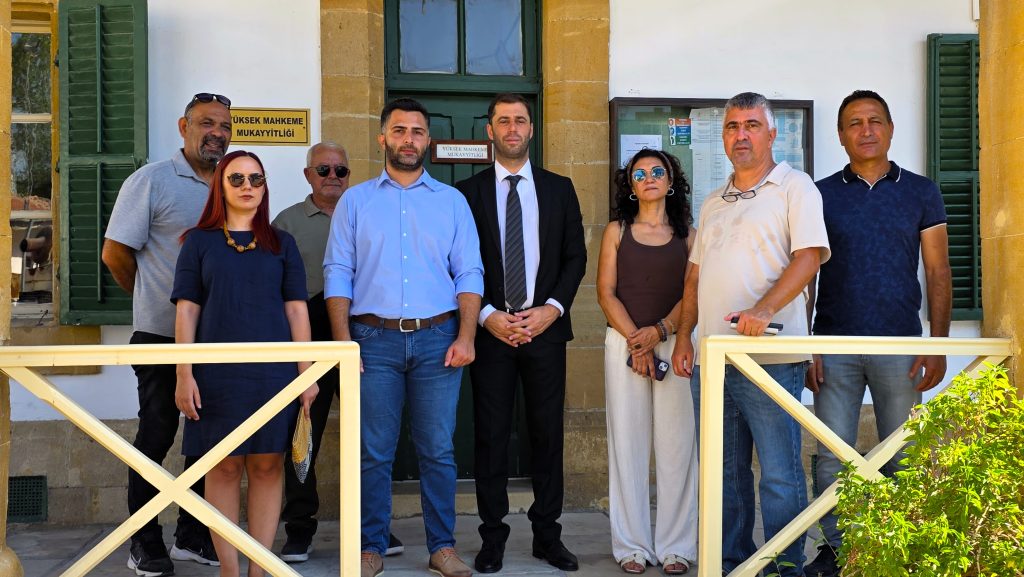 Başvuru öncesinde DEV-İŞ Başkanı Semih Kolozali ile Avukat Serkan Mesutoğlu, KTOEÖS Başkanı Selma Eylem ve Avukat Cansu Nazlı Lefkoşa Mahkemeleri önünde basına açıklama yaptı.