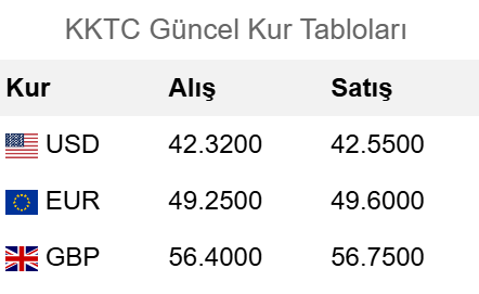 EkonomiFeaturedDöviz piyasalarında dalgalı seyir hakimPublished on: 9:50 pm Yazar Voice Kıbrıs HaberAralık 5, 20250 Paylaş0 KKTC serbest piyasalarında sterlin- dolar – euro kaç TL? 5 Aralık 2025 döviz kurları en son ne kadar oldu?Dolar/TL 42.55 lira civarında hareket ediyor.Euro/TL 49.60 lira bandında seyrediyor.Sterlin/TL ise 56.75 lira civarında yer alıyor.