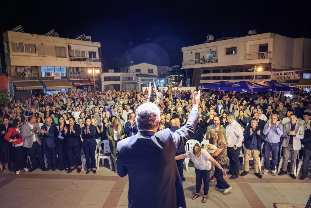 Cumhuriyetçi Türk Partisi (CTP) Genel Başkanı ve Cumhurbaşkanı adayı Tufan Erhürman, yağışlı havaya rağmen yoğun katılımdan dolayı Güzelyurtlulara teşekkür etti. Etkinlikte yaptığı konuşmada Cumhurbaşkanlığının tarafsızlığına da işaret eden Erhürman, “Sarayönü’ne tıkılıp kalmayacağız! Dünyayla buluşacağız! Gençlerimiz dünyayla buluşacak!” ifadelerini kullandı. Erhürman’a etkinlikte, Toplumsal Adalet ve Mücadele Partisi (TAM) Genel Başkanı Serdar Denktaş, Toplumcu Demokrasi Partisi (TDP) Genel Başkanı Zeki Çeler, CTP Güzelyurt İlçe Başkanı Çağlar Gulamkadir, birçok milletvekili ve belediye başkanı da eşlik etti.