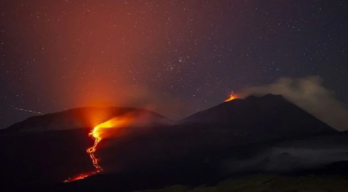 Lav akışı, 10 Ağustos’ta 3 bin metre rakımda Bocca Nuova ile Güneydoğu kraterleri arasında açılan effüzif çatlak tarafından besleniyor ve 14 Ağustos’ta yeniden etkin hale geldi.
