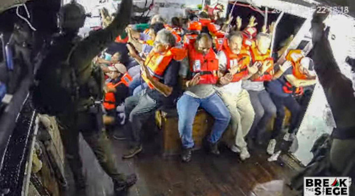FFC’nin Hanzala gemisinin takibi için başlattığı Youtube canlı yayınında, İsrail askerlerinin güverteye çıktığı ve gemideki yolcuların ellerini havaya kaldırdığı görüldü.