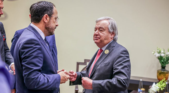 Alithia, “Başkan Hristodulidis ve Guterres, Kıbrıs Sorununu ve Amalthia’yı Görüştü… Ürdün’deki Gazze Konulu Konferans Çerçevesinde Görüştüler” başlığını kullandı.