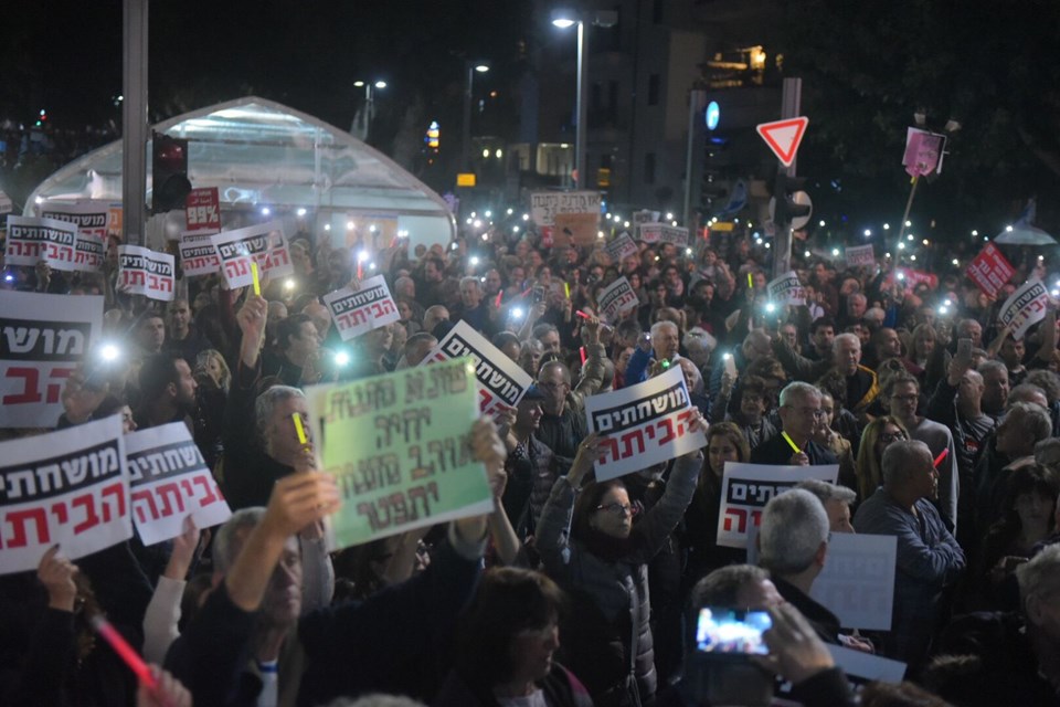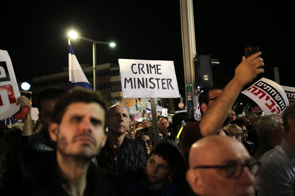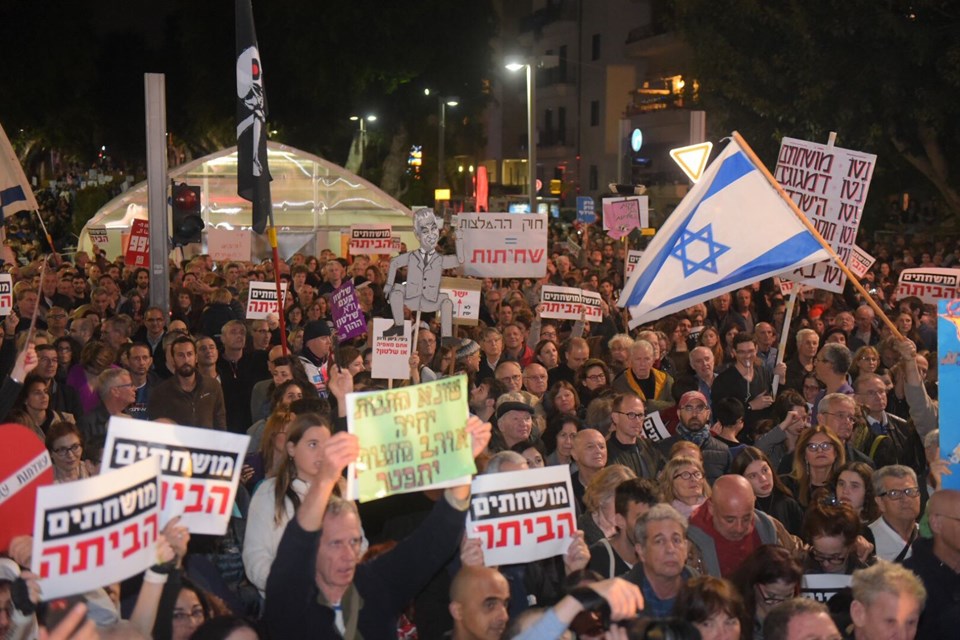 Yolsuzluk soruşturmasından polise yedi kez ifade veren Netanyahu’ya karşı kitlesel gösteriler sürüyor. “Utanç yürüyüşü” adıyla cumartesi günleri düzenlenen protesto gösterilerinin bu hafta üçüncüsü gerçekleştirildi.