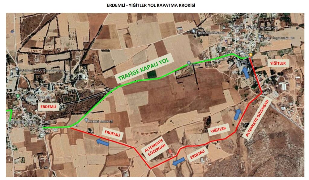 Erdemli-Yiğitler köyü arasındaki yol cumartesi ve pazar, Erdemli-Kırıkkale köyü arasındaki yol ise pazartesi, salı ve çarşamba günleri trafiğe kapalı olacak.