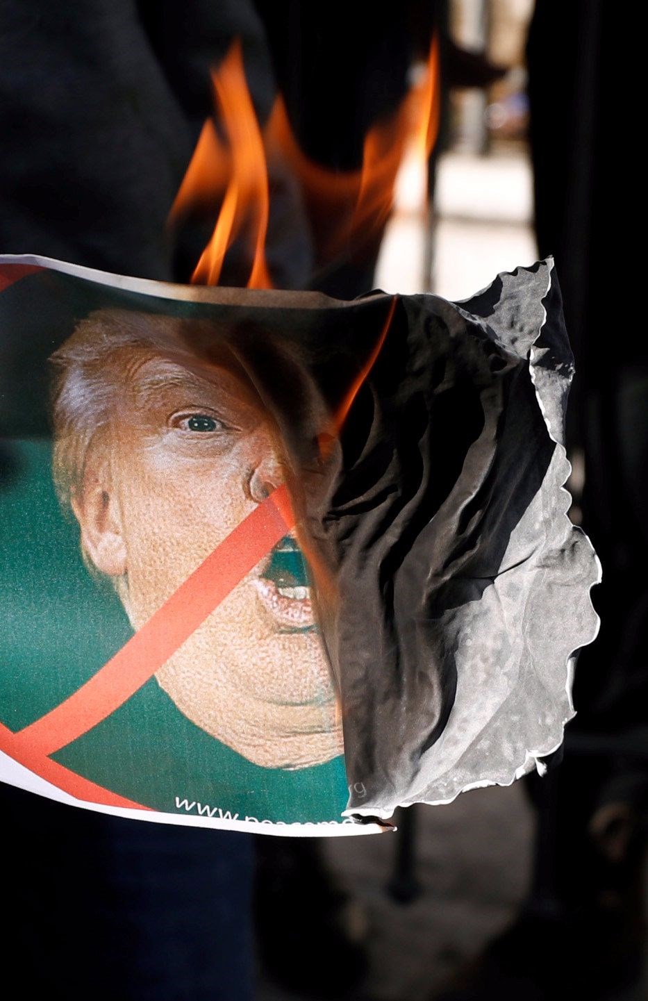 ABD Başkanı Donald Trump’ın Kudüs’le ilgili kararını açıklamasının ardından işgal altındaki Batı Şeria ile İsrail ablukası altındaki Gazze’nin bazı bölgelerinde düzenlenen protesto gösterilerinde Filistinliler, ABD ve İsrail bayraklarını yaktı.