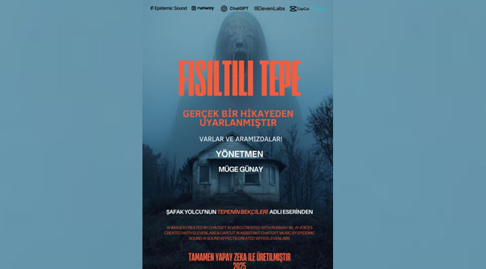 Yönetmen Müge Günay tarafından yapılan açıklamada, “Fısıltılı Tepe” isimli filmin dünyada tamamen yapay zekayla üretilen ilk ve en uzun metrajlı korku filmi olduğu kaydedildi.