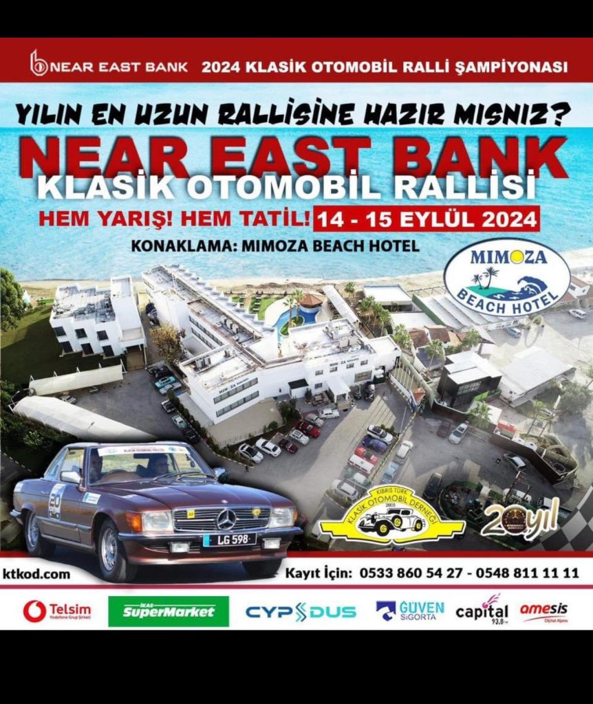 Kıbrıs Türk Klasik Otomobil Derneği’nin (KTKOD) organize ettiği “Near East Bank 2024 Klasik Otomobil Ralli Şampiyonası”nın üçüncü ve sezonun en büyük rallisi, “Near East Bank Klasik Otomobil Rallisi” 14-15 Eylül 2024 tarihleri arasında yapılıyor.