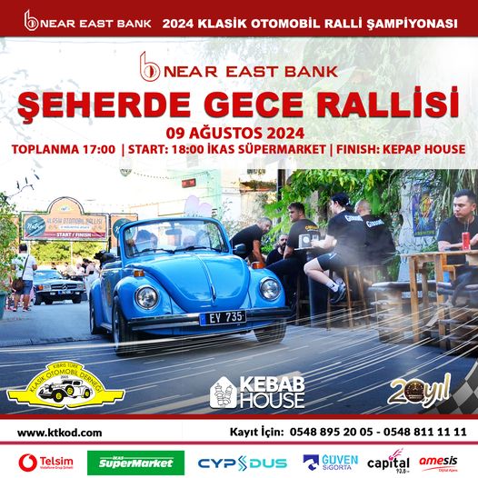 Kıbrıs Türk Klasik Otomobil Derneği’nin (KTKOD) yaz etkinlikleri arasında geleneksel hale gelen “Şeherde Gece Rallisi” sezonun ikinci rallisi olarak 9 Ağustos 2024 Cuma akşamı yapılıyor. KTKOD Near East Bank 2024 Klasik Otomobil Ralli Şampiyonası’nın yedinci etkinliği ve ikinci rallisi olacak olan ralli, 9 Ağustos 2024 Cuma akşamı Yakın Doğu Üniversitesi Kampüsü içerisinde bulunan İkas Süpermarket önünden başlayacak.