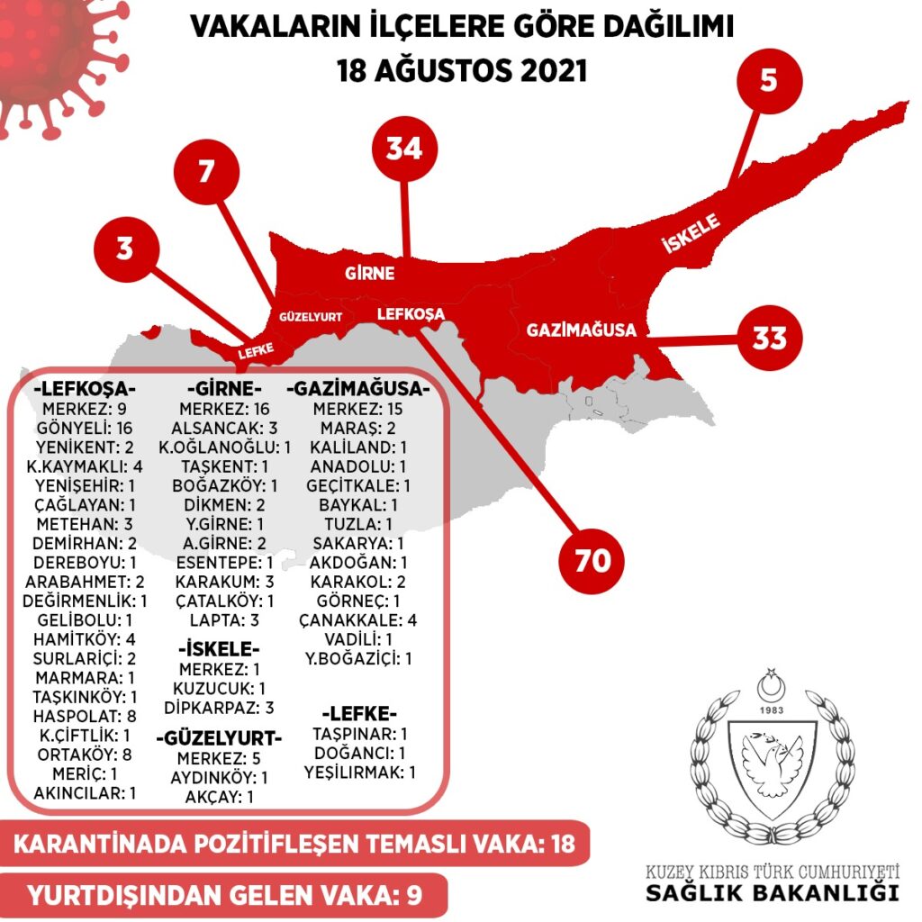 7 kişi yurt dışından hava yolu, 2 kişi deniz yolu ile ülkemize gelmiştir. 18 kişi daha önce tespit edilen vakaların temaslılarıdır ve bu süre içinde gözetim altında bulunmaktadırlar. 152 kişi ise yerel vakadır.