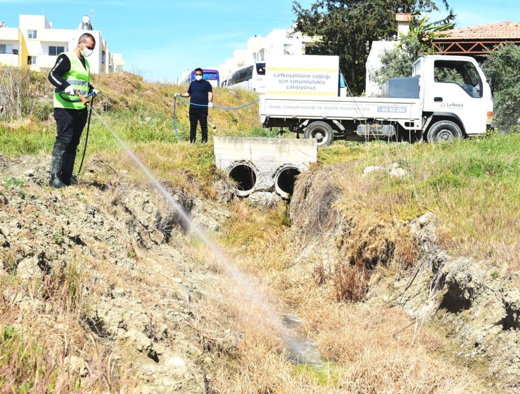 Dere ekibi günlük olarak Lefkoşa sınırları içerisindeki dere güzergahlarını kontrol ederek, bölgedeki durgun su tespitiyle birlikte biyolojik larvasit ile ilaçlama yapıyor.