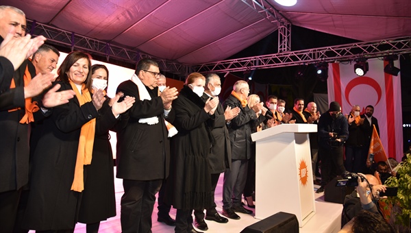 Tüm milletvekilleri, milletvekili adayları, aday adaları ve ilçe başkanlarıyla birlikte sahneye çıkan UBP Genel Başkanı Faiz Sucuoğlu da, tüm ilçelerden gelen partililer ve vatandaşlara teşekkür ederek, soğuk havaya rağmen burada olan herkesin zaferin mimarı olduğunu söyledi.