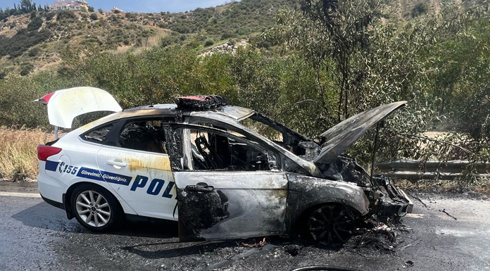 Girne – Değirmenlik Anayolu üzerinde görev maksatlı seyir halinde bulunan Girne Polis Müdürlüğü Trafik Şubesine ait RHA 4112 plakalı salon araçta henüz tespit edilemeyen sebepten dolayı yangın çıktı.
