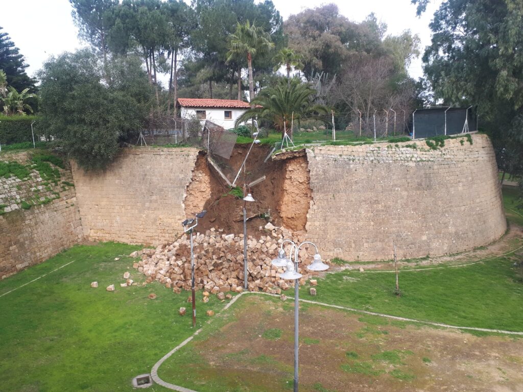Cumhurbaşkanlığı binasının bulunduğu noktada bulunan tarihi surlar çöktü.