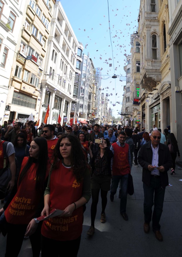 DİSK, KESK, TMMOB ve Türk Tabipler Birliği üyeleri, Kazancı Yokuşu’nda bir araya gelerek çeşitli sloganlar attı.
