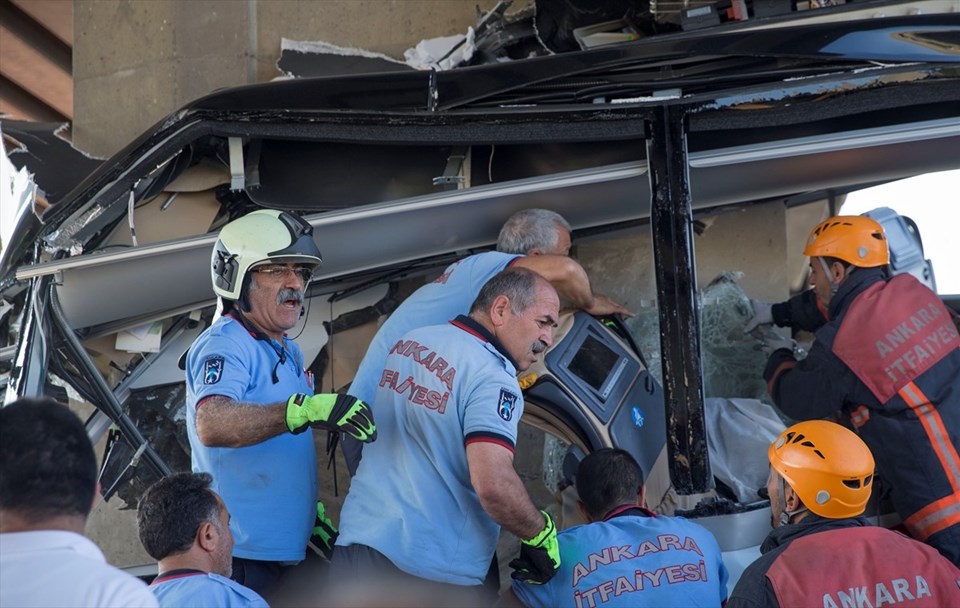 Otobüste sıkışanların kurtarılması için bölgeye çok sayıda itfaiye ekibi sevk edildi. Yaralılar, ambulanslarla hastanelere kaldırıldı.
