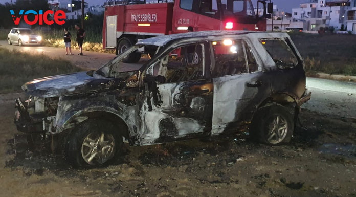 According to a statement by police, the vehicle licensed (KZ 474) that was being driven on Vezneciler Street in Gönyeli caught fire and was destroyed.