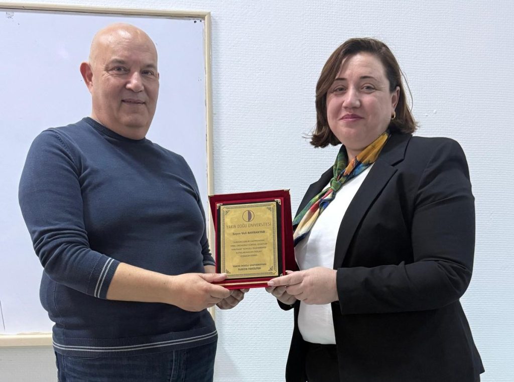 Yakın Doğu Üniversitesi Turizm Fakültesi Turizm Araştırma ve Geliştirme Merkezi tarafından düzenlenen “Sürdürülebilir Gastronomi: Yerel Ürünlerle Küresel Lezzetler Yaratmak” başlıklı etkinlik, Turizm Fakültesi Yeşil Salon’da gerçekleştirildi. Gastronomi alanında sektörel deneyime sahip isimlerden biri olan Karmatechnic F&B Yatırım Projeleri Yönetici Ortağı Mutfak Şefi Veli Bayraktar’ın konuşmacı olarak katıldığı etkinlikte, açılış konuşmasını Turizm Fakültesi Dekanı Prof. Dr. Nesrin M. Bahçelerli yaptı. Akademisyen ve öğrencilerin yoğun ilgisiyle gerçekleştirilen etkinlikte; Girne Üniversitesi Turizm Fakültesi Gastronomi ve Mutfak Sanatları öğrencileri de yer aldı.
