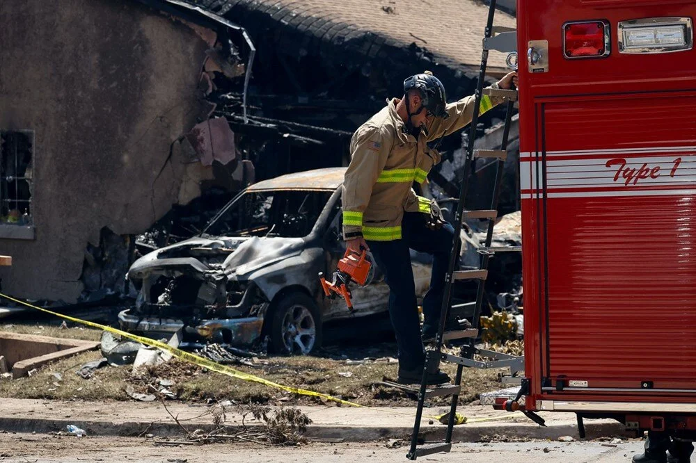 Baker, çarpmanın etkisiyle çıkan yangın nedeniyle uçağın alev topuna döndüğünü ve yakındaki ev ve araçların da yandığını aktardı.