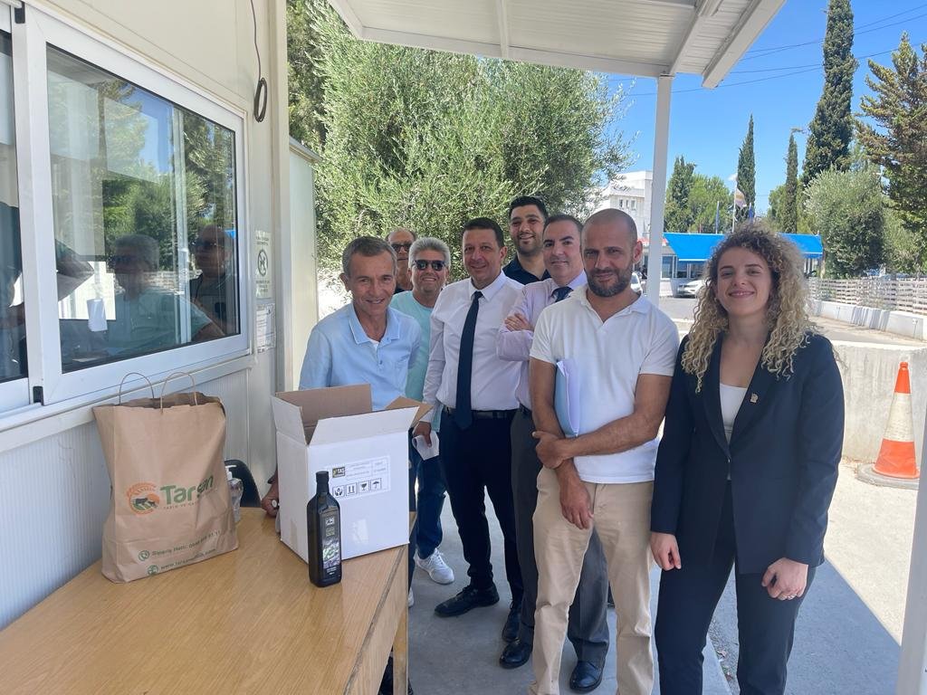 120 şişe 750 ml ambalajında zeytinyağı Metehan Sınır Kapısı’ndan Güney Kıbrıs’a gönderildi. Ayrıca, macun, reçel ve pekmez gibi 6 adet pilot ürün de numune olarak Güney Kıbrıs’a yollandı.